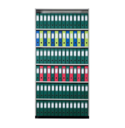 The shelf accommodates 11 Lever Arch Files or 10 A4 Containers filed laterally